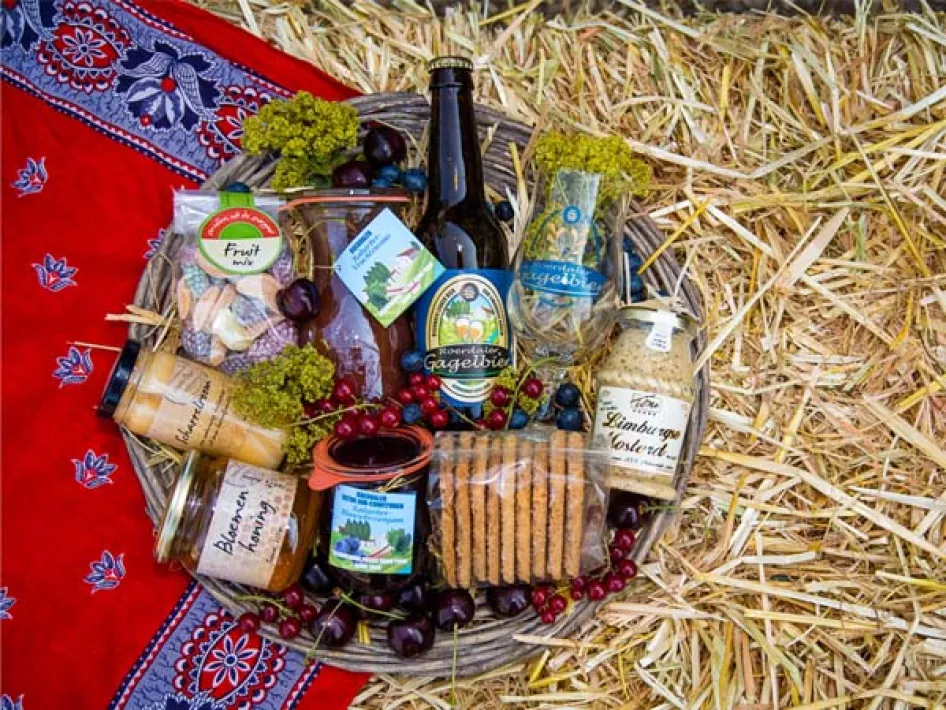 Wir servieren diese schönen regionalen Produkte auf unserer Bauernterrasse und im 'Kippenhok' (Hühnerstall).