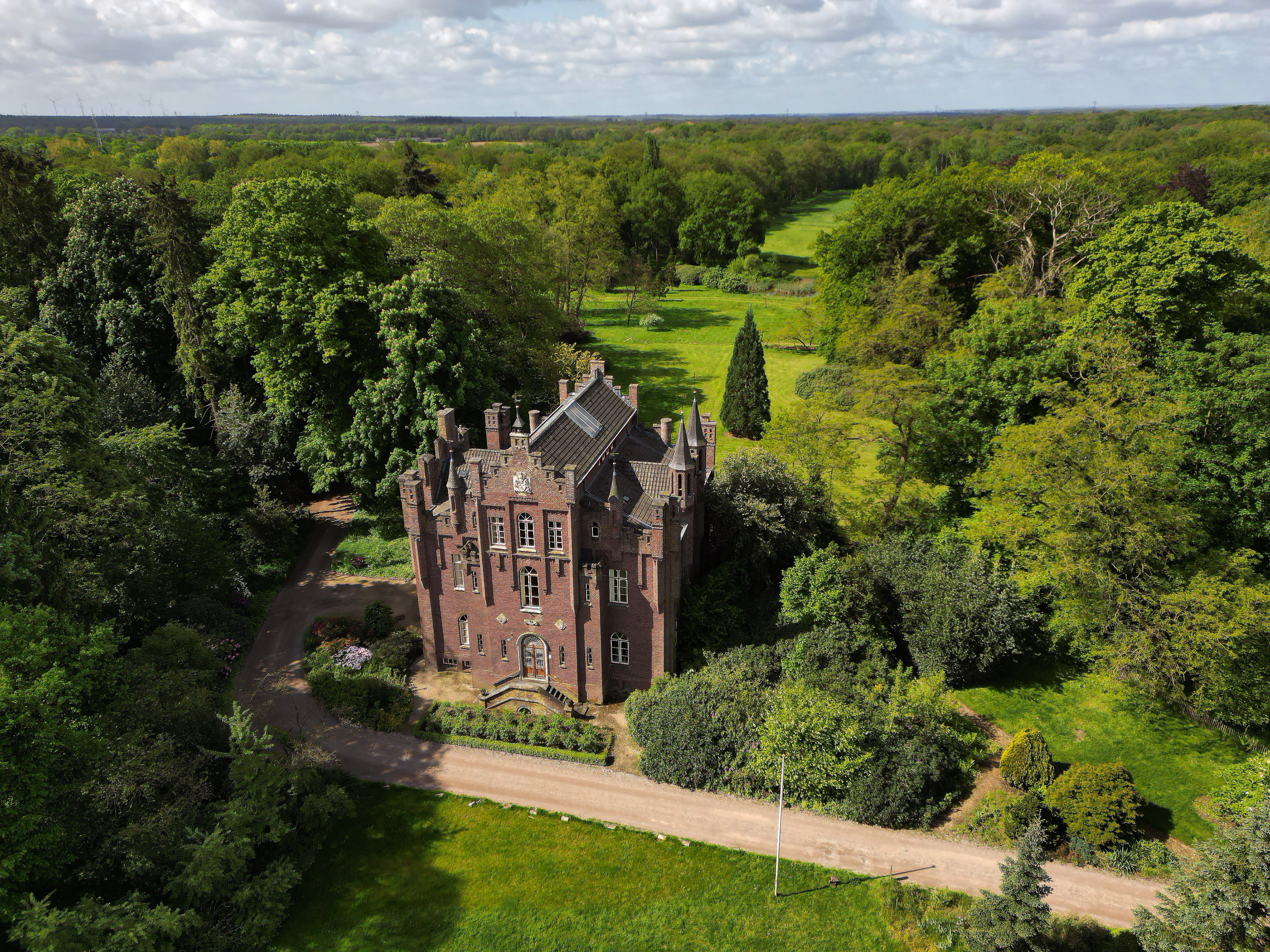 Dieses romantische Schloss aus dem 19. Jahrhundert (1854 vom Architekten Pierre Cuypers erbaut) liegt in einem englischen Landschaftsgarten.