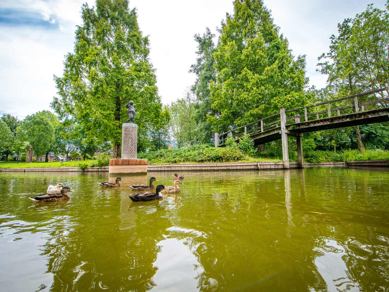 Im Teich steht eine Skulptur eines spielenden Kindes, eine Insel, eine Brücke, spielende Kinder, zwitschernde Enten. So einfach kann das Leben sein. Man trifft dort immer jemanden, der freundlich ist. Sie finden den Teich zwischen Eikenlaan und Elzenlaan in Sint Odiliënberg. Parken können Sie an der Kreuzung Kapittellaan/Willem Alexanderlaan. Gehen Sie über den Weg rechts vom Pflegezentrum Bergh zum Schaapsweg. Überqueren Sie die Straße und biegen Sie links ab. Biegen Sie dann rechts in die Eikenlaan ein. Über diese Straße erreichen Sie nach 100 Metern den Teich.