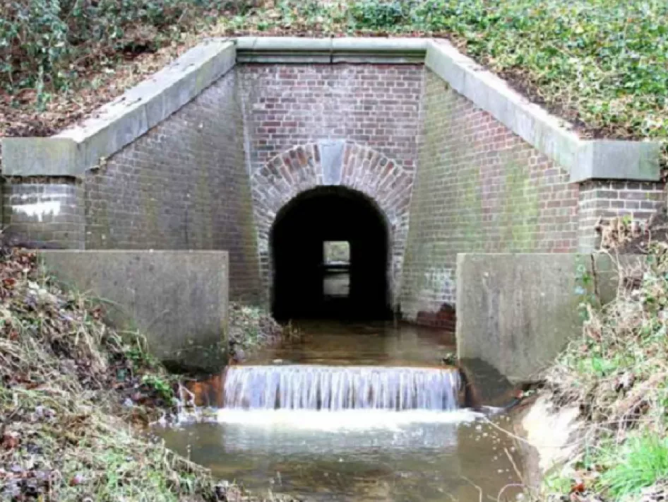 Der Tunnel/die Brücke ist noch immer in einem guten Zustand, trotz des hohen täglichen Verkehrsaufkommens auf dem Napoleonsweg. Dank umfangreicher Grünpflege ist der Düker jetzt wieder gut zu sehen.