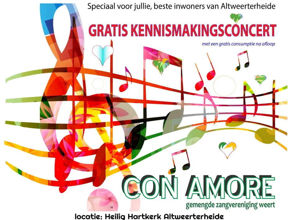 Zangvereniging Con Amore verzorgt op zondagmiddag 18 januari een bijzonder nieuwjaarsconcert om 15.00 uur in de Heilig Hartkerk in Altweerterheide.