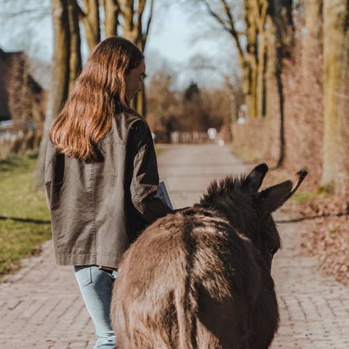 Spring can also be experienced here in a special way: during a donkey walk. Together with a donkey you set off along quiet paths, past meadows, forest edges and small country roads.