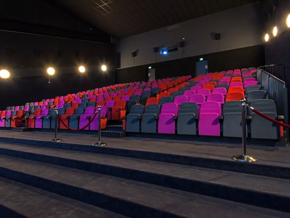 The cinema has 7 halls with a capacity between 188 and 254 luxury seats with tables, plenty of legroom, unobstructed view, digital projection, and climate control. The total capacity is 1.712 seats.