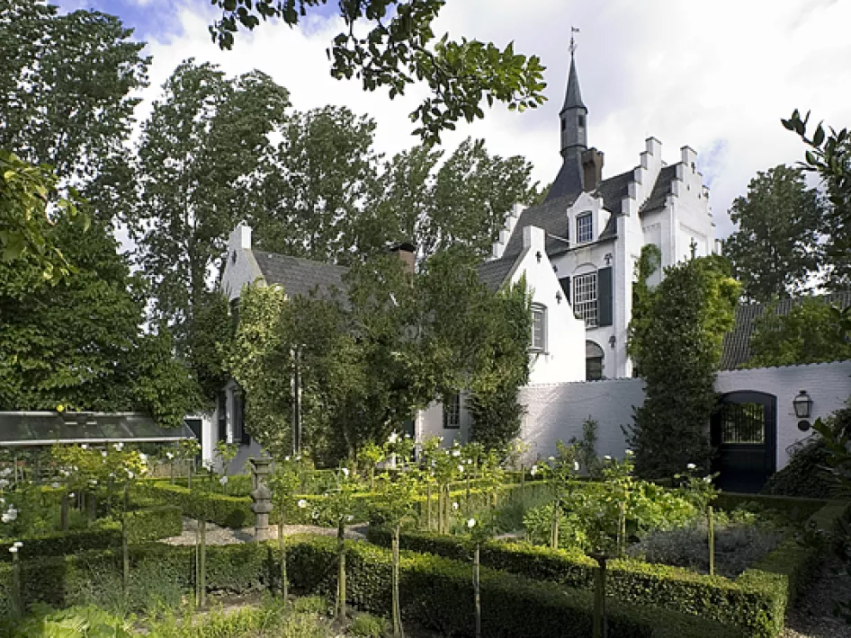 Castle Great Buggenum, also known as Old-Buggenum, has white-painted walls and the appearance of a neo-Gothic hunting lodge. Around the castle is a fairytale garden with several garden rooms and fountains. The garden is separated by stone walls.