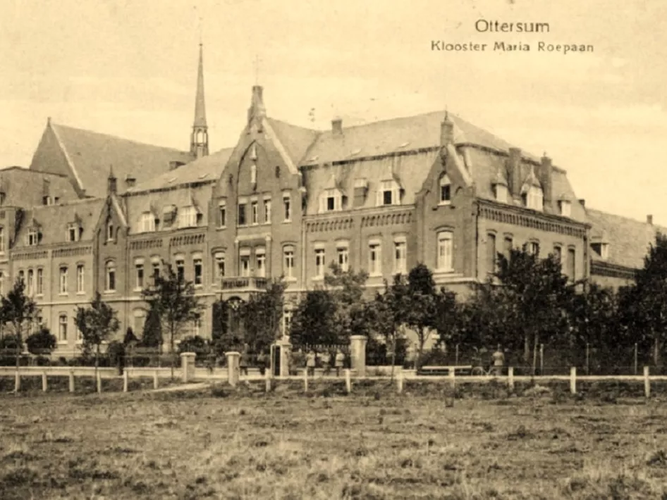 In September 1944, the German Wehrmacht took over Klooster Maria Roepaan as accommodation for about one hundred soldiers. However, they were quickly replaced by hundreds of (forced) laborers from Germany, including many older men and children younger than 15 years old, who had to dig trenches and tank ditches in the area. They received help from Russian prisoners of war. On September 17, they witnessed the Allied airborne landings and bombs, causing the monastery to shake and panic to break out. Shortly thereafter, the Russians left and the monastery was used as an emergency hospital and shelter for refugees from the surrounding area. But soon the monastery had to be evacuated and the Germans took over again. They set the monastery on fire before retreating, and most of it burned down. The monastery was liberated by the British and Canadian armies a few days later, who used the still inhabitable remnants as temporary housing.