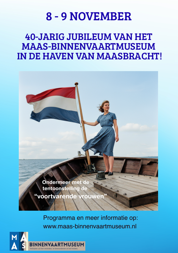 Op 8 en 9 november 2025 viert het Maas Binnenvaartmuseum in Maasbracht haar 40-jarig jubileum. Twee dagen lang staat de binnenvaart centraal met historische schepen, verhalen, activiteiten voor jong en oud én een tentoonstelling over vrouwen op het water.