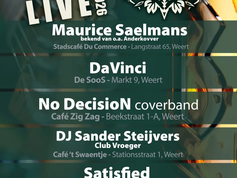 Geniet van een Brand-biertje terwijl je samen met vrienden de avond beleeft in de energie van livemuziek en de bruisende sfeer van Weert. Ontdek elk café en elk podium en laat je verrassen door de diversiteit aan talent en muziekstijlen.
