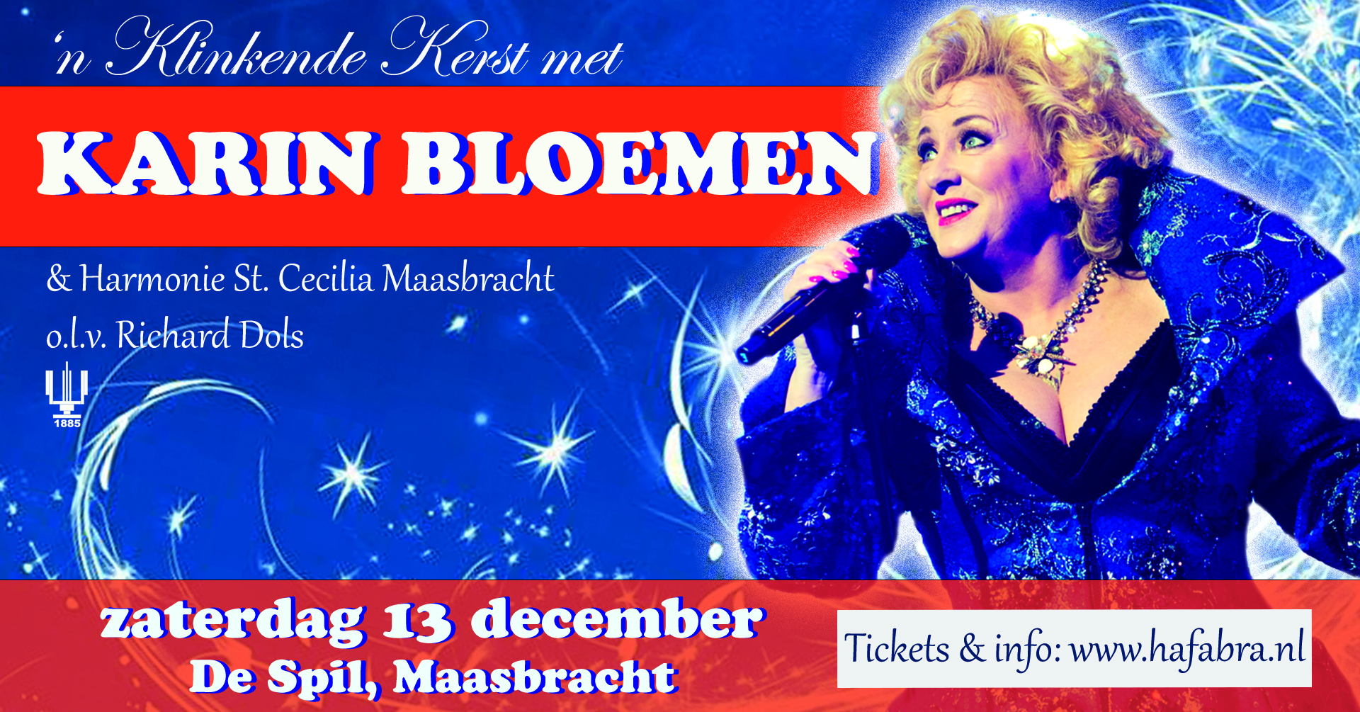 Harmonie St. Cecilia viert 140 jaar muzikale traditie. Dat wordt afgesloten met een sfeervolle kerstavond vol muziek, warmte en een vleugje theater. Niemand minder dan Karin Bloemen staat samen met het harmonieorkest op het podium. Met haar stem, humor en uitstraling brengt ze een feestelijke gloed over de avond. Onder leiding van dirigent Richard Dols ontstaat een unieke samenwerking, waarbij klassiek, kerst en cabaret samenkomen.
