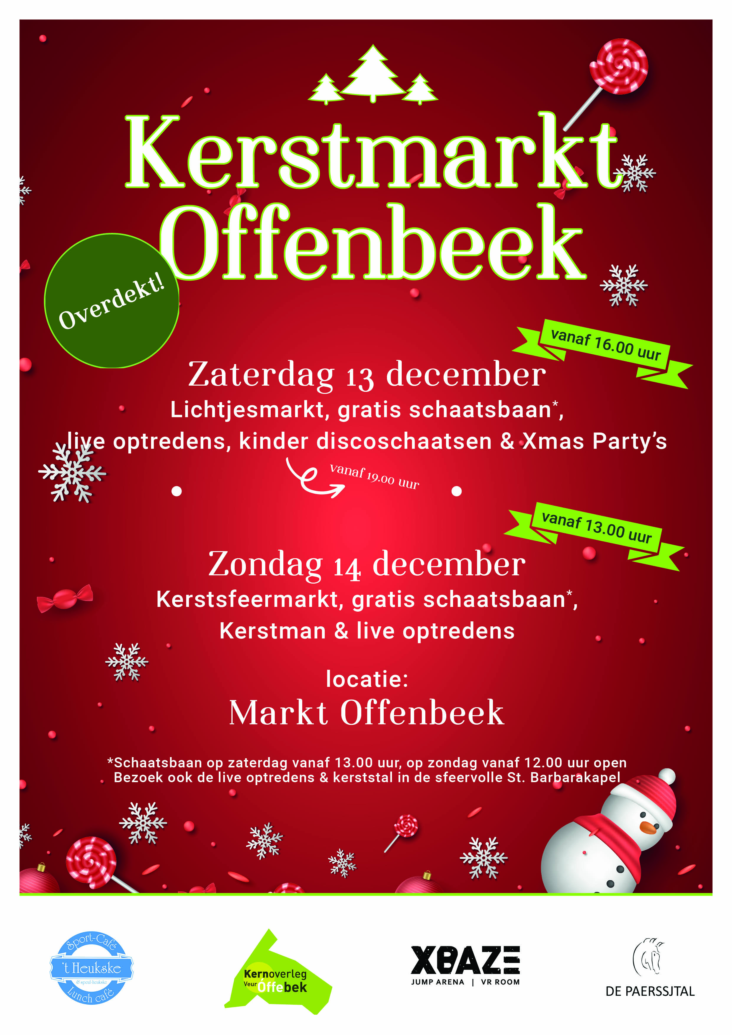 Op zaterdag 13 en zondag 14 december 2025 verandert Offenbeek in een sfeervol kerstdecor. Tijdens deze tweedaagse kerstmarkt geniet je van warme lichtjes, live muziek, een gratis schaatsbaan, kerstkramen en natuurlijk een bezoek van de kerstman.