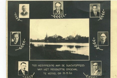 Op 11 november 1944 vindt een veerongeluk plaats in Kessel. Zeven Belfeldenaren worden door Duitse militairen gedwongen om over te steken met het veer. De veerman weigert mee te werken: de veerpont is verkeerd geladen, vol water gelopen en zwaar overbelast. Maar bevel is bevel. Het veer kapseist en zinkt. Man en paard verdrinken in rivier de Maas.