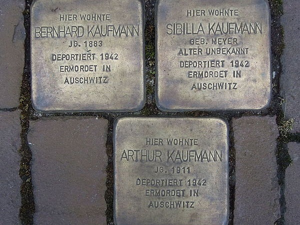 Stolpersteine zijn kleine kasseien ter nagedachtenis aan Arthur Kaufmann, Bernhard Kaufmann en Sibylla Kaufmann. Tijdens de Tweede Wereldoorlog waren zij slachtoffers van de vervolging van Joden.