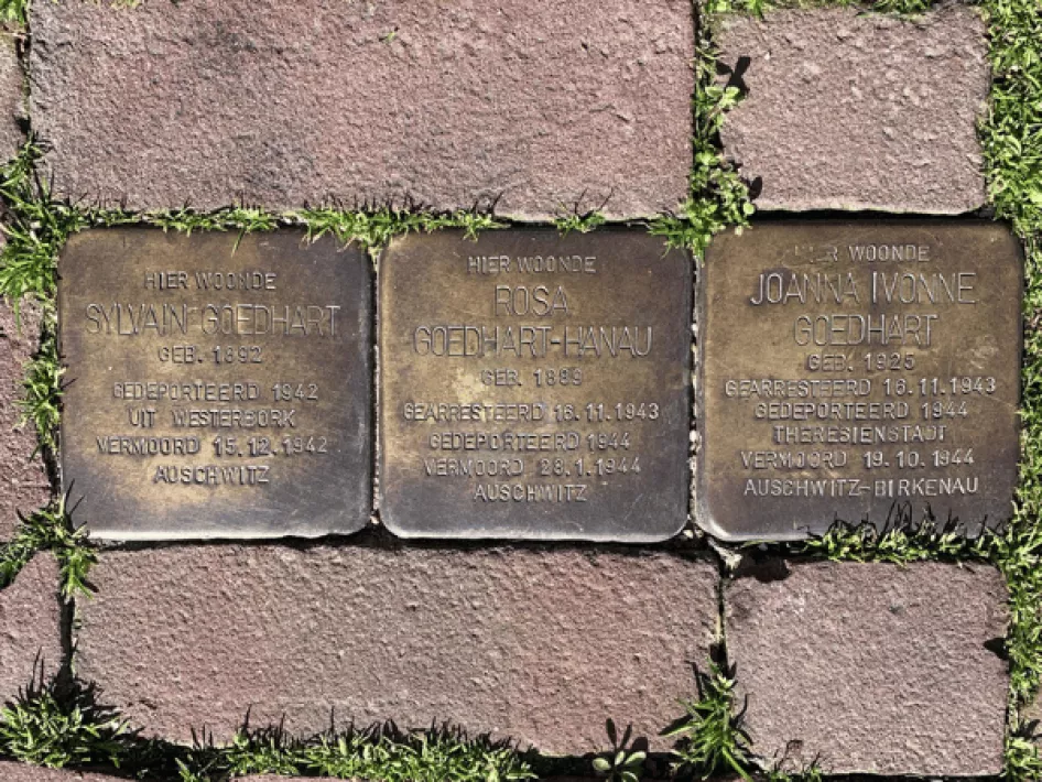 Bij Stationsplein 12 liggen Stolpersteine ter nagedachtenis aan: Sijlvain Goedhart, Rosa Hanau en Joanna Ivonne Goedhart. De hoofdcommissaris van politie te Roermond verzocht opsporing, aanhouding en voorgeleiding van Rosa Goedhart-Hanau en haar dochter Joanna Yvonne Goedhart, beiden wonende in de Pieter Cuyperstraat 7 te Roermond. Zij werden ervan verdacht van woonplaats te zijn veranderd zonder de daartoe vereiste vergunning te hebben. Alleen René overleefde de Jodenvervolging tijdens de Tweede Wereldoorlog, de andere gezinsleden werden vermoord.