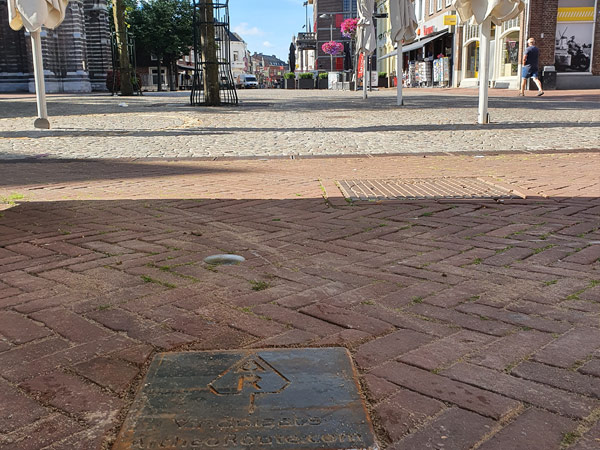 LET OP: De vindplaats ligt bij het terras aan de zijkant van brasserie D' Oude Markt op de Markt in Weert. Hier zie je ook de contouren van de plek waar de waterput oorspronkelijk heeft gestaan.